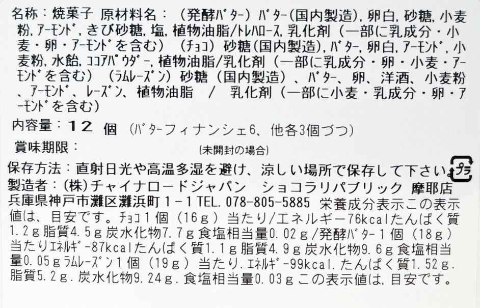 内容量:発酵バターフィナンシェ6個・チョコフィナンシェ3個・季節のフィナンシェ3個・【合計12個】